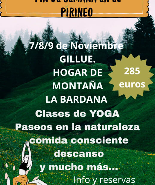 En Guillué, hotel de montaña La Bardana. Clases de yoga, paseos en la naturaleza, comida consciente, descanso y mucho más …. 652 818 765 (Oihane).