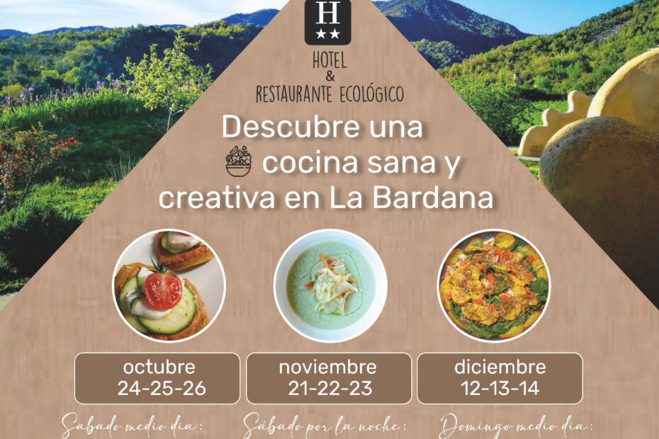 Hotel & Restaurante ecológico Octubre 25 | Noviembre 22 | Diciembre 13 (Sábados mediodía) Elaboraremos una ensalada con sus verduras marinadas, un cereal con verduras salteadas, una proteína vegetal y un postresaludable (productos según mercado). Octubre 25 | Noviembre 22… Leer más »Cocina Sana y creativa en la Bardana